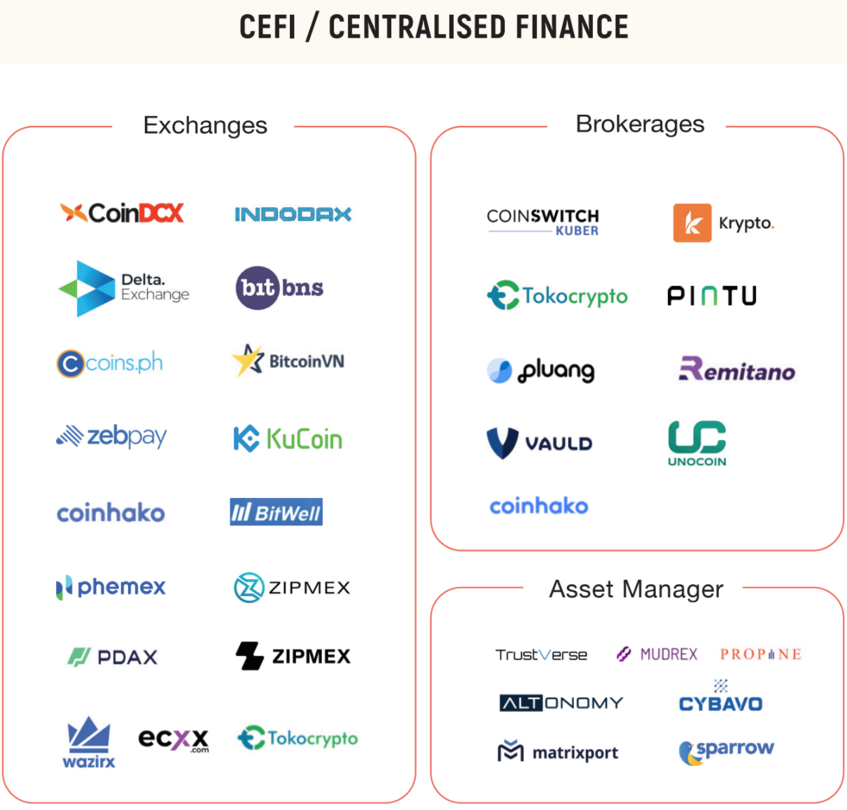 In fact, the rise of DeFi is reducing the capital concentration of centralized exchanges. Along with this, we are also seeing the rise of regional (Pintu, CoinDCX, CoinSwitch) or pan-regional (Upbit, Binance) crypto brokerages and exchanges. While “mega exchanges” tend to get really big (e.g. Binance / Coinbase valuations are in the $50–100B range), we believe over time regional exchanges will become quite large themselves by virtue of supportive regulation and better localization/brand.